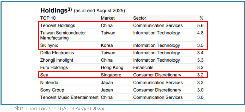 K-ATECH เป็นกองทุนหุ้นเทคฯ แนะนำของ K WEALTH ลงทุนในกองทุนหลัก JPMorgan Pacific Technology Fund ซึ่งถือหุ้นแชมป์ของแต่ละอุตสาหกรรมอย่าง TSMC, SK Hynix, Tencent, Sea Limited ครบทุกธีมที่เราเล่ามา