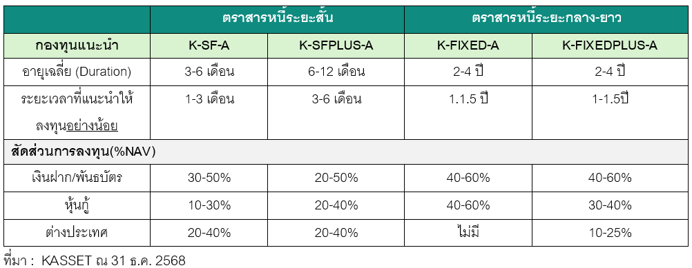 K-FIXED-A: ลงทุนในตราสารหนี้ระยะกลาง-ยาวในประเทศเท่านั้น Duration > 1 ปี (แนะนำลงทุน 1 ปีขึ้นไป)