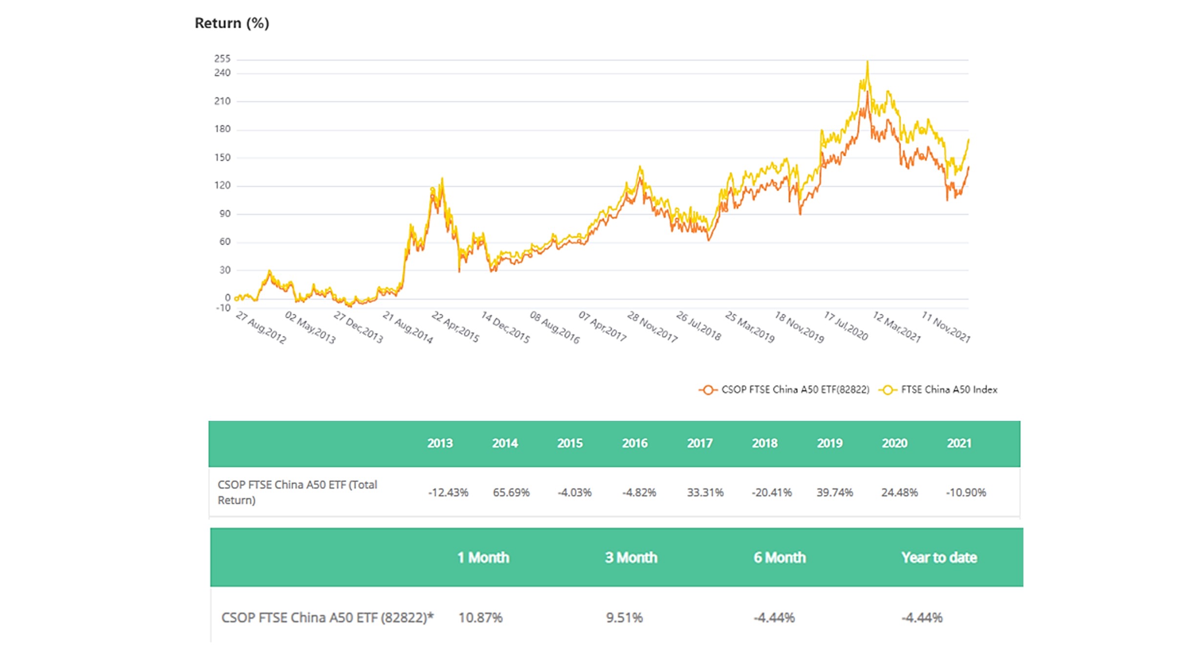 กองทุน CSOP FTSE China A50 ETF ที่กองทุน K-CHX ลงทุน ทำผลตอบแทนตั้งแต่จัดตั้งกองทุนจนถึงวันที่