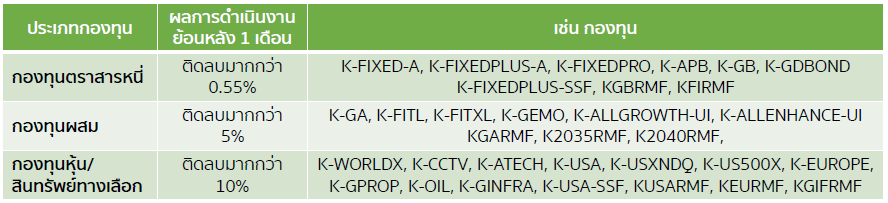 ช่วง 1 เดือนที่ผ่านมา หลายกองทุนปรับตัวลง