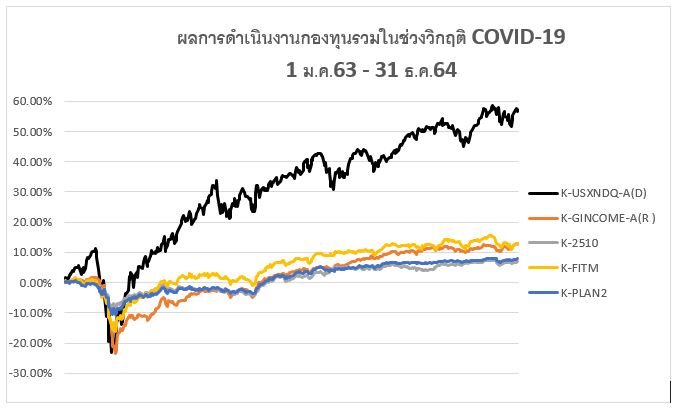 หลายสำนักการลงทุนทั้งในและต่างประเทศต่างคาดการณ์กันว่าปี 2566 เศรษฐกิจโลกมีแนวโน้มเข้าสู่ภาวะถดถอย ทำให้หลายคนมีความกังวลเกี่ยวกับการลงทุน รวมถึงกังวลว่ากองทุนรวมผสมจะผ่านวิกฤติครั้งที่จะถึงนี้ไปได้หรือไม่ จึงได้ยกข้อมูลผลการดำเนินงานของกองทุนรวมผสมของบลจ.กสิกรไทยบางส่วนในอดีต ช่วงวิกฤติ COVID-19 ระบาดใหม่ๆ จนทำให้เกิดการล็อกดาวน์ กระทบเศรษฐกิจ และตลาดการลงทุนทั่วโลก
