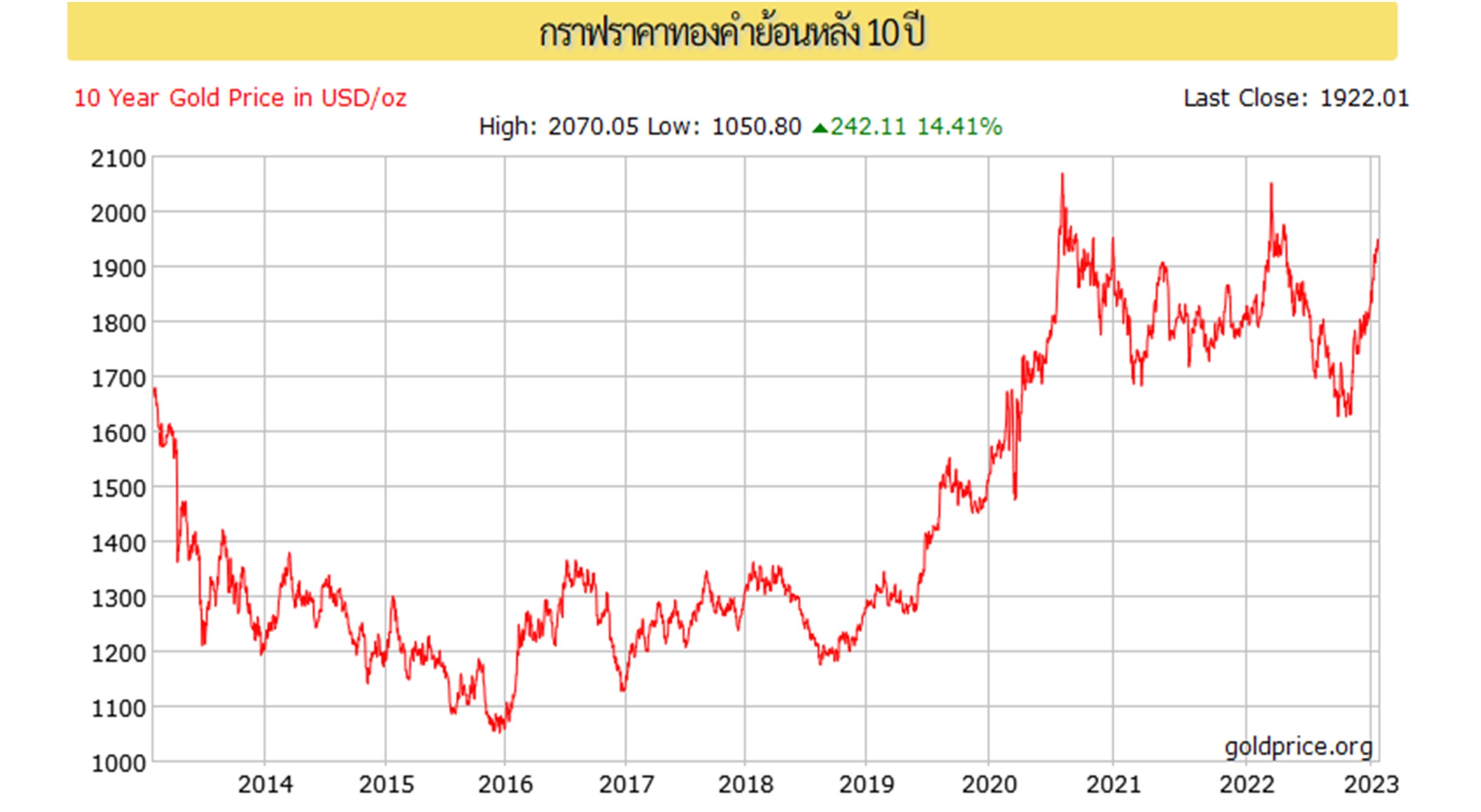 ราคาทองคำในช่วง 10 ปีที่ผ่านมา (ข้อมูล ณ วันที่ 31 ม.ค. 66)