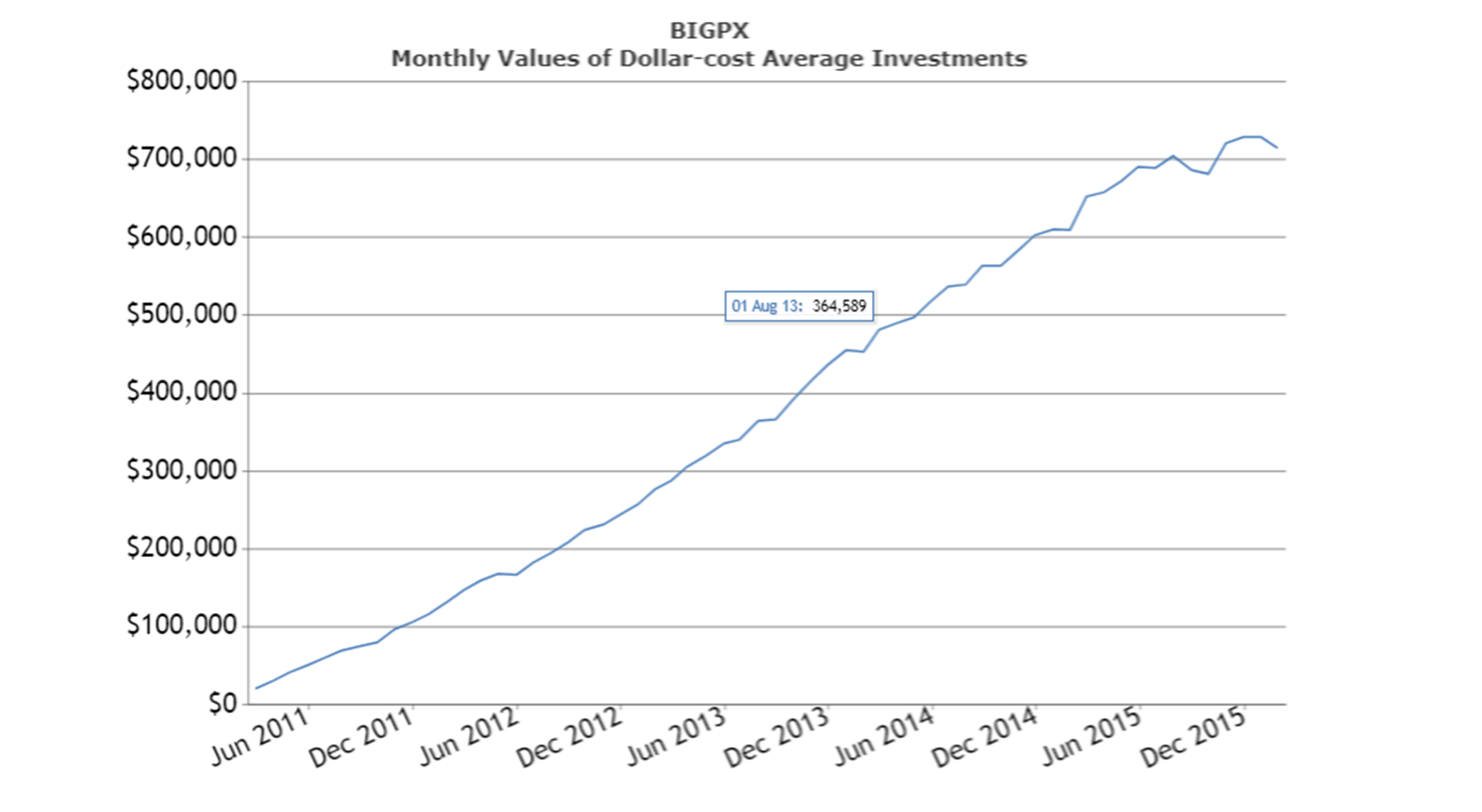 จากการ Backtest ข้อมูลการ DCA เดือนละ 10,000 บาท เป็นระยะเวลา 5 ปีเท่ากัน ณ จุดที่ดัชนีตลาดหุ้นสหรัฐฯ S&P 500 อยู่ที่ประมาณ 1290 จุดในปี 2008 และ 2011 โดยลงทุนกองทุนผสมกองเดิมจะเห็นว่าการ DCA ตั้งแต่ช่วงก่อนวิกฤติคือช่วง สิงหาคม 2008 ไปจนถึง สิงหาคม 2013 เงินจะงอกเงยเป็น 817,981.54 ในขณะที่ DCA ด้วยเงินจำนวนเท่ากัน เป็นระยะเวลา 5 ปีเท่ากัน แต่เริ่มลงทุนหลังวิกฤติคือช่วง มกราคม 2011 จนถึง มกราคม 2016 เงินจะงอกเงยเป็น 714,844 บาท นี่จึงเป็นข้อพิสูจน์ว่า แม้ลงทุนตั้งแต่ก่อนวิกฤติจะเกิดขึ้น แต่ระหว่างที่เกิดวิกฤติแล้ว เรายังลงทุนต่อเนื่อง ทำให้เราได้ซื้อของถูก ต้นทุนเฉลี่ยต่ำลง เมื่อลงทุนระยะเวลาเท่ากัน ผลตอบแทนของการลงทุนจึงมากกว่าการลงทุนหลังวิกฤติผ่านพ้นไปแล้วนั่นเอง