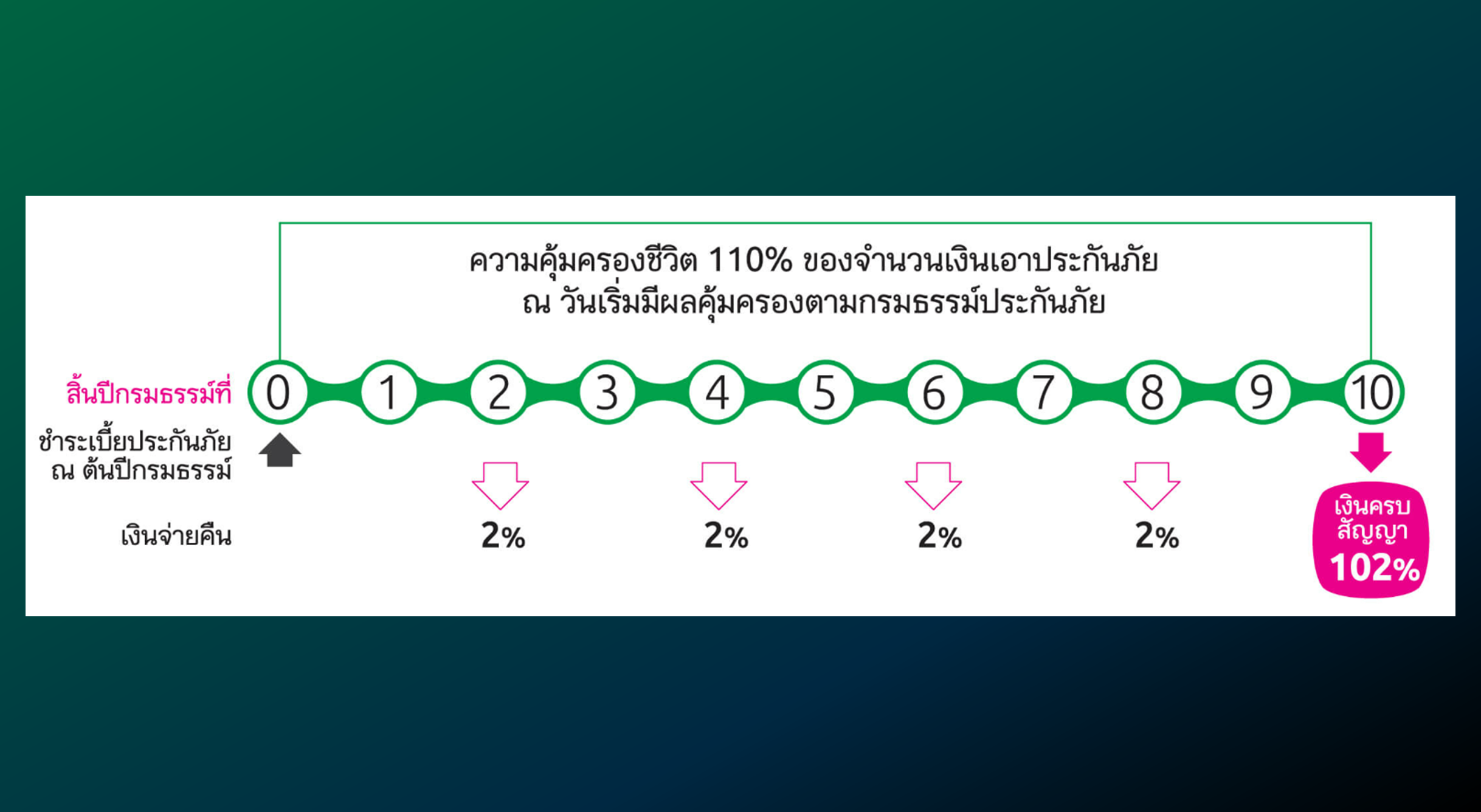 แต่ถ้าเป็นมือใหม่หัดลดหย่อนภาษีด้วยเครื่องมือประเภทประกันชีวิต ก็มีประกัน One Plus 10/1 ชำระเบี้ยครั้งเดียว ณ ต้นปีกรมธรรม์ ระยะเวลาเอาประกัน 10 ปี ได้เงินคืน 2% ทุก 2 ปี ที่สำคัญลดหย่อนภาษีได้