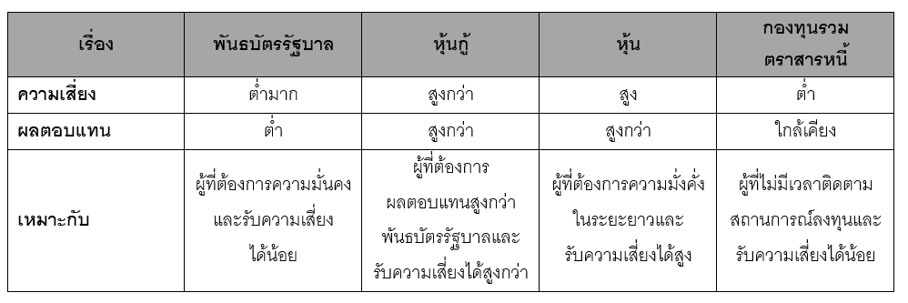 เปรียบเทียบพันธบัตรรัฐบาลกับการลงทุนอื่น