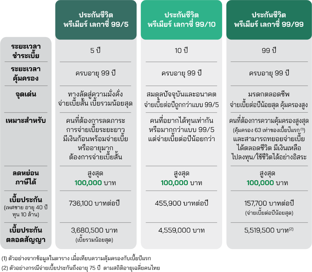3. ประกันชีวิต พรีเมียร์ เลกาซี่ 99/99