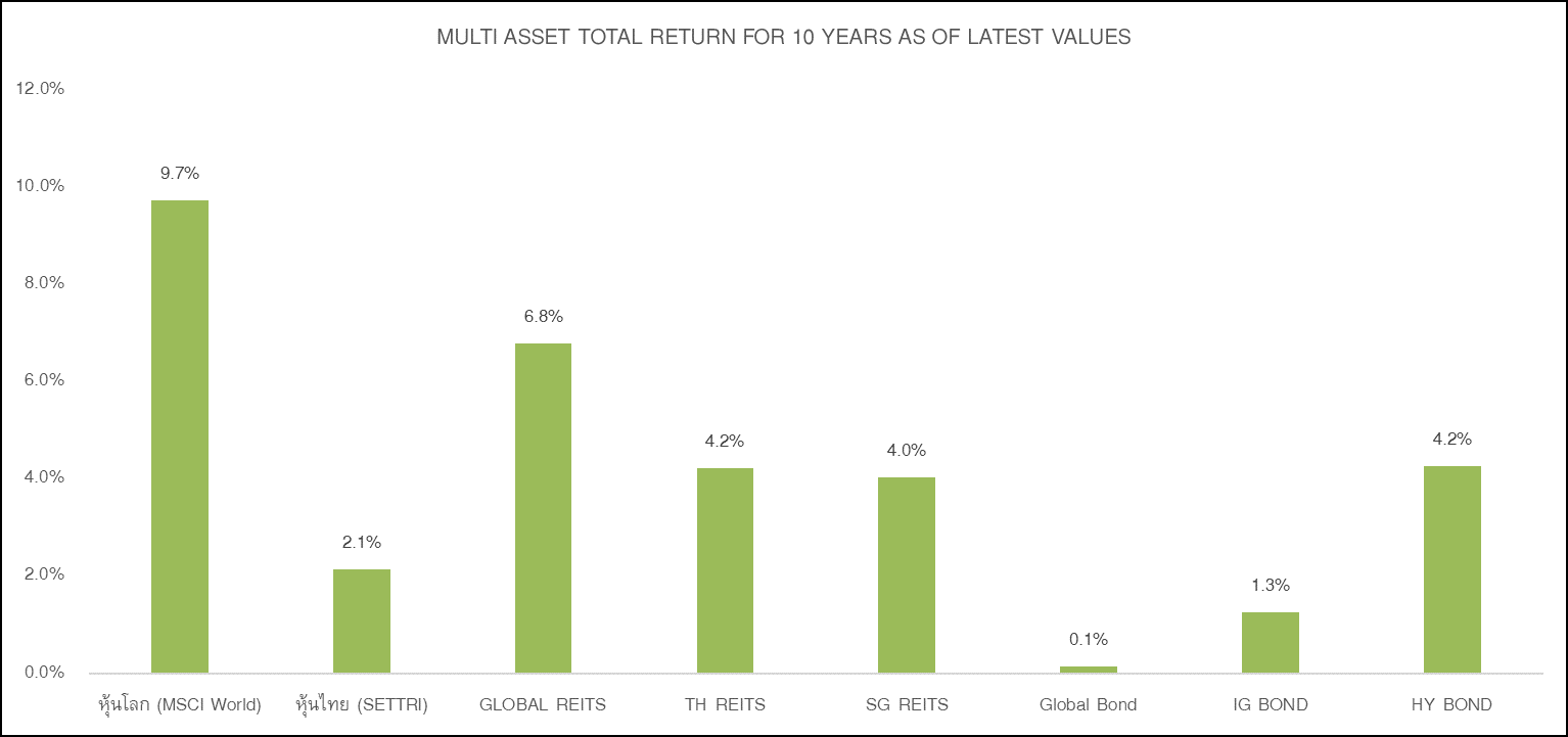 ตาราง : ค่าเฉลี่ยผลตอบแทน 10 ปี ของสินทรัพย์ต่างๆ