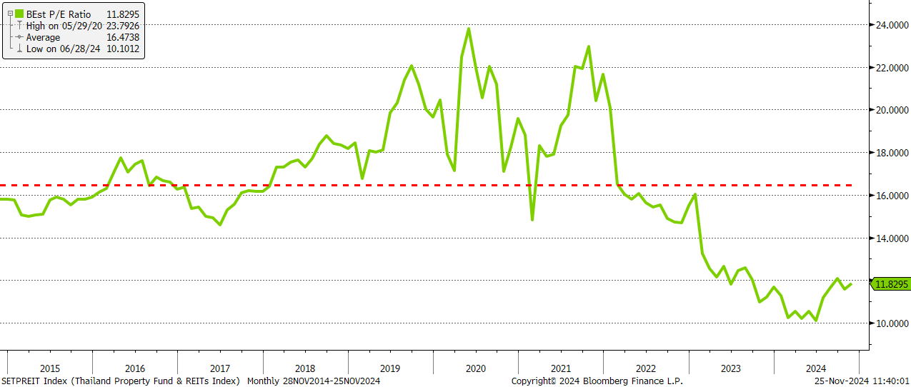 กราฟ : Bloomberg (BEst) P/E Ratio : SETPREIT Index (Thailand Property Fund & REITs Index)