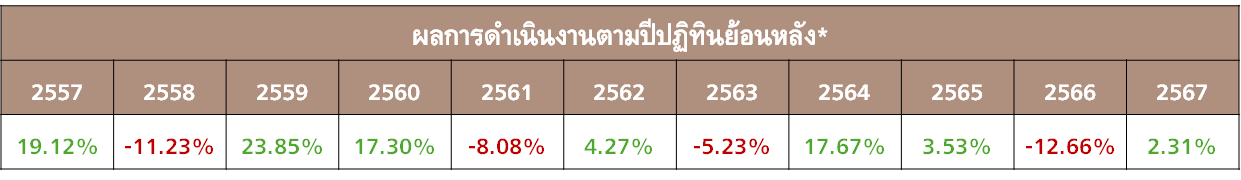 * สามารถดูผลการดำเนินงานย้อนหลังเพิ่มเติมได้ที่ www.kasikornasset.com