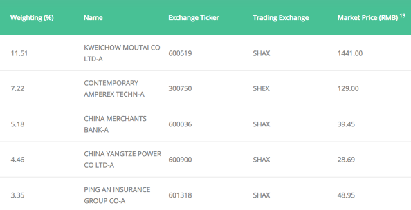 หุ้น 5 อันดับแรกใน CSOP FTSE China A50 ETF (RMB)