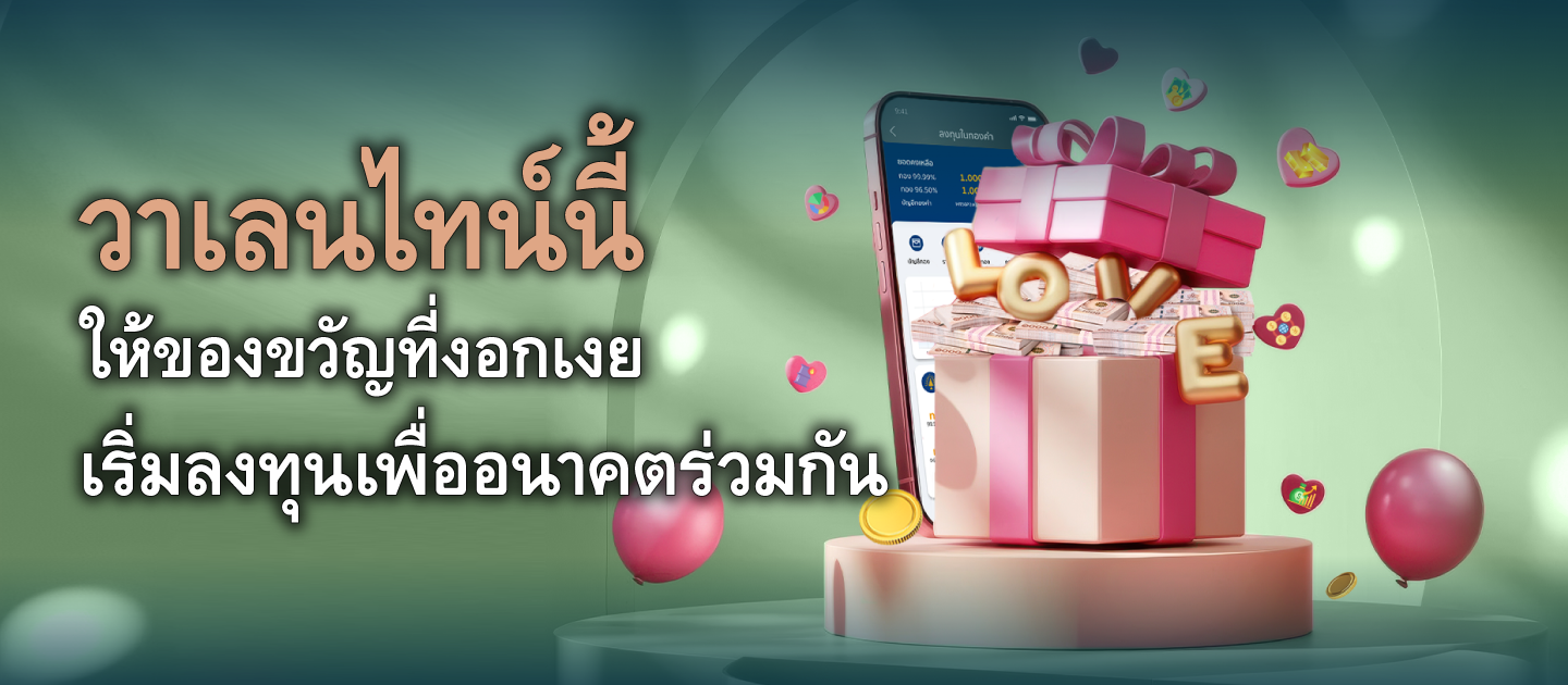 วันวาเลนไทน์คงเป็นช่วงเวลาพิเศษที่หลายคนมองหาของขวัญแทนความรักและความห่วงใย เพื่อที่จะมอบให้กับคนพิเศษของเรา ไม่ว่าจะเป็นดอกไม้ ช็อกโกแลต หรือเครื่องประดับ แต่ของขวัญเหล่านี้แม้จะสร้างความสุขในช่วงเวลาหนึ่งแต่ก็อาจเสื่อมสลายไปตามกาลเวลา ถ้าปีนี้เรามาเปลี่ยนแนวคิด จากของขวัญที่สวยงามชั่วคราว ลองมอบของขวัญที่มีคุณค่าและสามารถเติบโตขึ้นได้ในอนาคตล่ะ...มันคงจะมีคุณค่าไม่น้อย การลงทุนเป็นอีกทางเลือกหนึ่งที่ไม่เพียงแต่แสดงถึงความเอาใจใส่ แต่ยังเป็นเป็นสัญลักษณ์ของความมุ่งมั่นและการสร้างรากฐานที่มั่นคง รวมถึงการส่งต่อโอกาสทางการเงินที่สามารถงอกเงยไปพร้อมกับความสัมพันธ์ของคุณ