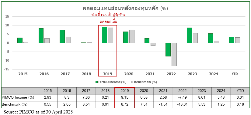 PIMCO GIS Income Fund ที่เน้นลงทุนในสหรัฐฯ เพื่อจะได้ประโยชน์จากการลดดอกเบี้ยของ Fed ในระยะข้างหน้า ซึ่งมีผลตั้งแต่ 15 พ.ค. 2025 เป็นต้นไป