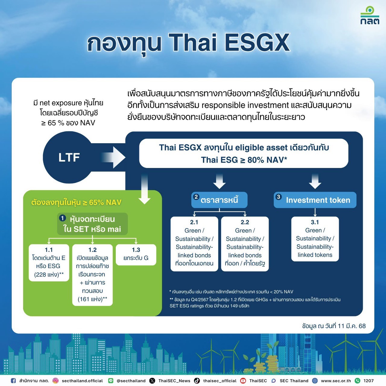 หลังปี 2568 การลงทุนใหม่เข้ากองทุน Thai ESGX จะใช้วงเงินลดหย่อนเดียวกับ Thai ESG