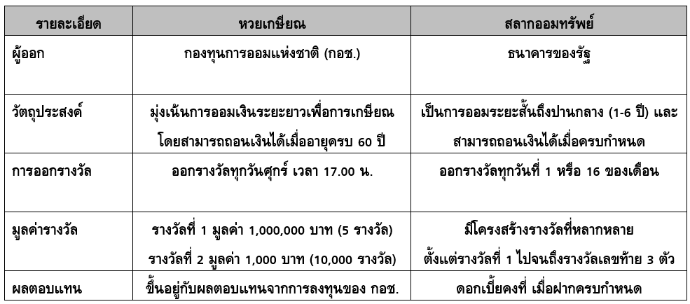 เปรียบเทียบหวยเกษียณกับสลากออมทรัพย์