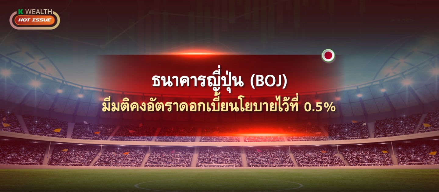 ธนาคารกลางญี่ปุ่น (BOJ) คงดอกเบี้ยที่ 0.5% ตามคาด พร้อมส่งสัญญาณผ่อนคลายมากขึ้น โดยปรับลดคาดการณ์ GDP ปี 2025 เหลือ 0.5% และ Core CPI เหลือ 2.2% จากแนวโน้มเศรษฐกิจชะลอและเงินเฟ้อลดลง