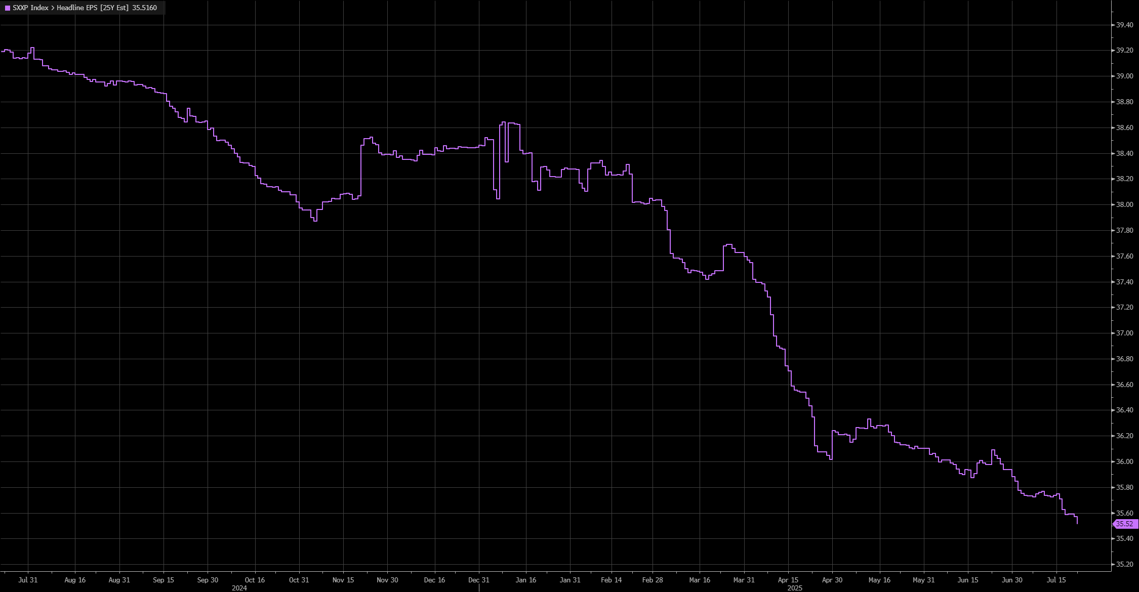นอกจากแรงกดดันจากภาษีแล้ว ความไม่แน่นอนทางนโยบายการค้า ที่ทวีความรุนแรงขึ้นยังสร้างผลกระทบเชิงจิตวิทยา (sentiment) และทำให้ valuation ของหุ้นยุโรป เริ่มถูก discount จากความเสี่ยงเชิงโครงสร้าง ส่งผลให้ แนวโน้มการปรับประมาณการกำไร (earnings revision) ของหุ้นยุโรปยังคงติดลบต่อเนื่องในไตรมาส 3/2025