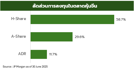 - สำหรับนักลงทุนที่ยังไม่มีสัดส่วนการลงทุนในหุ้นจีน แนะนำลงทุนไม่เกิน 20% ของพอร์ต