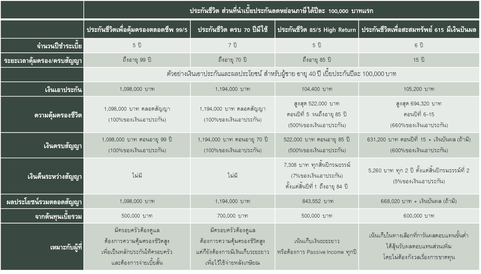 ประกันชีวิต ที่เบี้ยประกันลดหย่อนภาษีได้ปีละ 100,000 บาทแรก