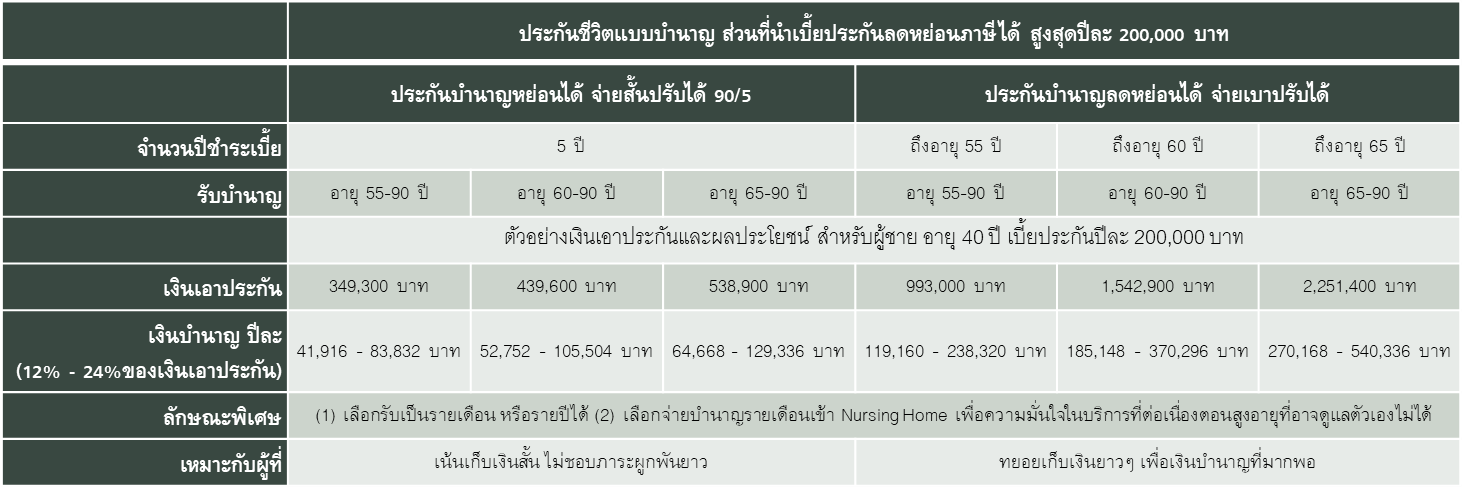 ประกันบำนาญ ที่เบี้ยประกันลดหย่อนภาษีได้ สูงสุดปีละ 200,000 บาท