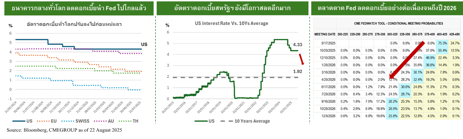 ต้องยอมรับรับว่าทุกวันนี้นักลงทุนต่างเฝ้าจับตาการลดดอกเบี้ยของ Fed อย่างกระชั้นชิดแบบติดขอบสนามและคาดหวังว่าจะเริ่มลดดอกเบี้ยตั้งแต่การประชุม FOMC วันที่ 17 กันยายน 2025 นี้เลย ซึ่งนั่นก็จะส่งผลดีต่อตลาดตราสารหนี้อย่างมาก โดยเฉพาะกองทุน K-GDBOND ที่เน้นลงทุนในสหรัฐฯ ด้วยเช่นกัน