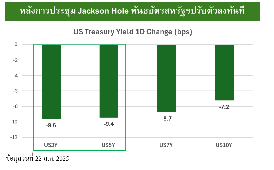- ราคาตราสารหนี้ที่เพิ่มขึ้นหลังผลตอบแทนพันธบัตรรัฐบาลสหรัฐฯ (Bond Yield) ปรับลดลงมาประมาณ 24bps (5Y US Treasury Yield as of 20 ส.ค. 2025) ซึ่งก็ต้องยอมรับว่า PIMCO มีการคาดการณ์และได้ปรับเพิ่มอายุเฉลี่ยของพอร์ตโดยรวม (Duration) มาก่อนหน้านี้แล้วที่ประมาณ 5 ปี เพื่อที่จะได้ประโยชน์จาก Yield ที่ลดลง