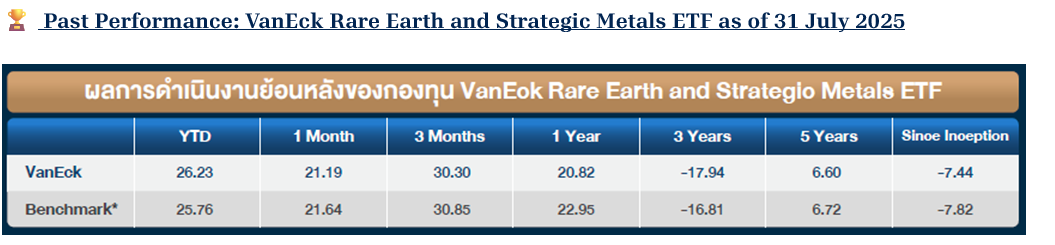 การลงทุนในธีม Rare Earth จึงไม่ใช่แค่การลงทุนในวัตถุดิบหายาก แต่ยังสะท้อนการลงทุนในกระแส Protectionism, ความผันผวนของค่าเงินดอลลาร์, และโอกาสการกลับมาของเงินเฟ้อโลก
