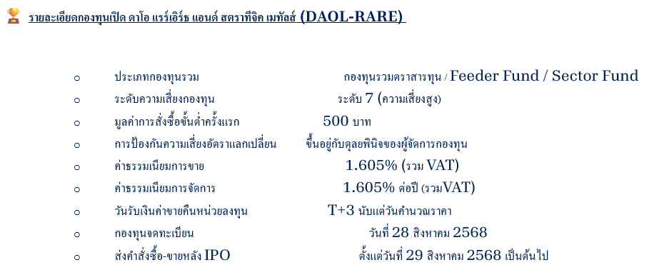 นำเสนอกองทุนใหม่ DAOL-RARE