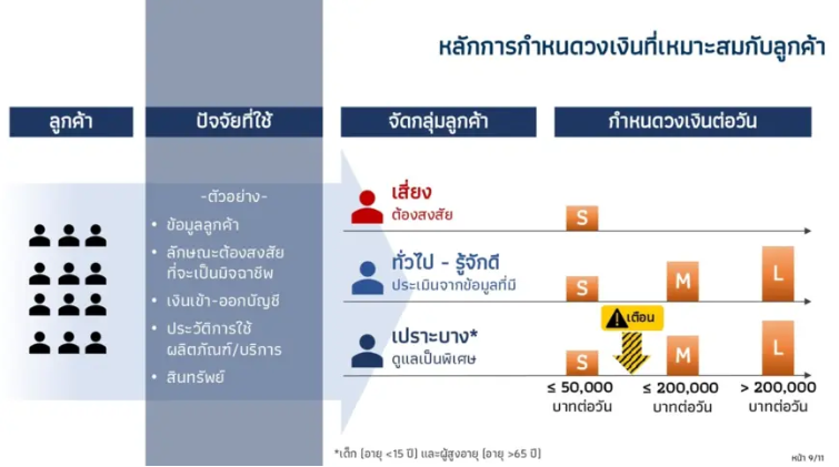 ล่าสุดเมื่อวันที่ 19 สิงหาคม 2568 ธปท. ออกมายกระดับมาตรการเชิงป้องกัน โดยกำหนดวงเงินการโอน และชำระเงินต่อวันผ่านช่องทางดิจิทัลของลูกค้าบุคคลธรรมดาให้เหมาะสมกับพฤติกรรมการทำธุรกรรมของลูกค้า (Customer Profiling) ซึ่งวงเงินเริ่มต้นไม่เกิน 50,000 บาทต่อวันที่ปรากฏในหน้าข่าว จะบังคับใช้กับกลุ่มเสี่ยงที่จะเป็นบัญชีม้า และกลุ่มเปราะบาง (เด็กอายุต่ำกว่า 15 ปี และผู้สูงอายุ อายุมากกว่า 65 ปี) เป็นหลัก ถ้าเป็นลูกค้าเดิมก็จะมีการประเมินวงเงินจากข้อมูลที่มี ซึ่งถ้าประเมินแล้วได้วงเงินน้อยลง ลูกค้าสามารถยื่นข้อมูลเพิ่มหากอยากได้วงเงินเพิ่มขึ้นได้