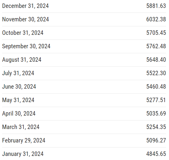 หาก DCA 12 เดือน ต้นทุนเฉลี่ยจะอยู่ที่ดัชนีประมาณ 5,460.22 จุด