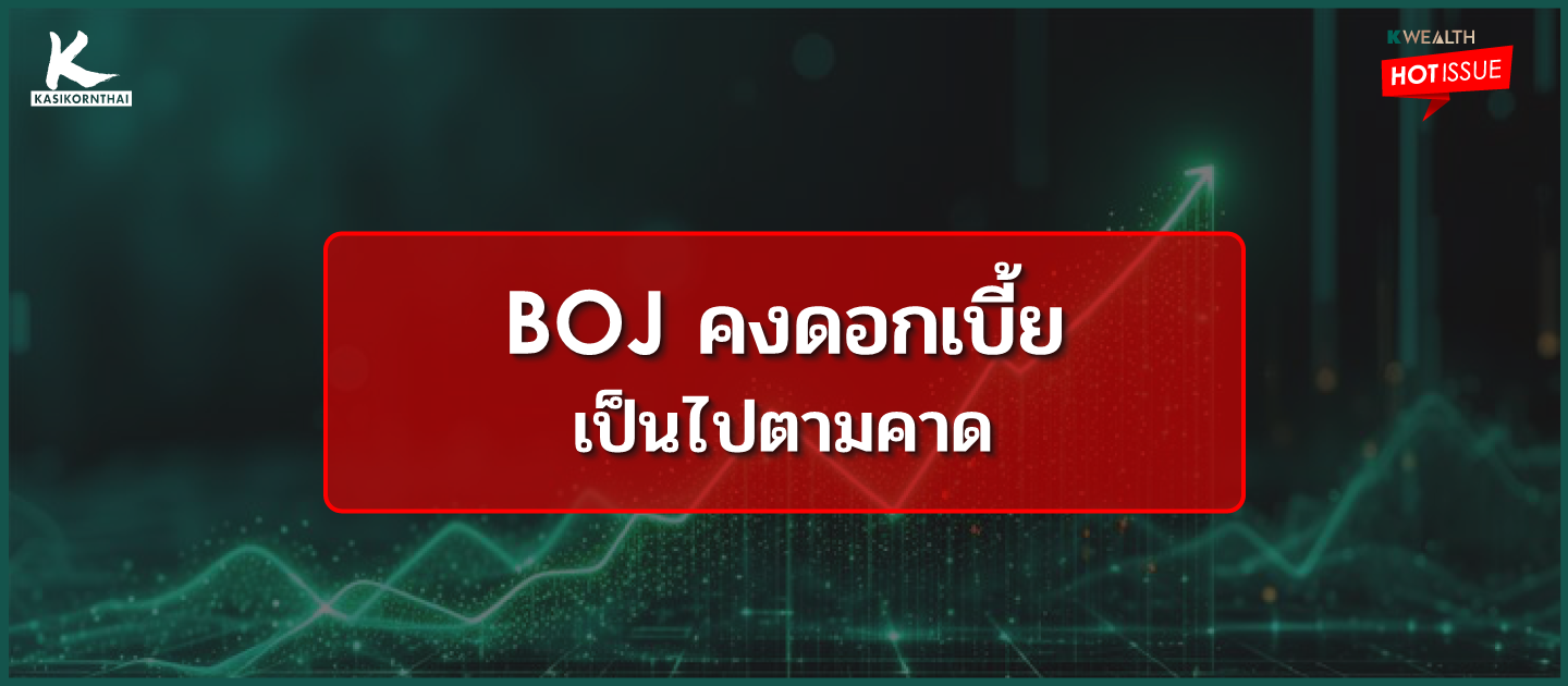 ท่าที Dovish ของ BOJ ทำให้คาดได้ว่าการขึ้นดอกเบี้ยจะเป็นไปอย่างค่อยเป็นค่อยไป และอาจเกิดขึ้นในช่วงปลายปีนี้หรือต้นปีหน้า