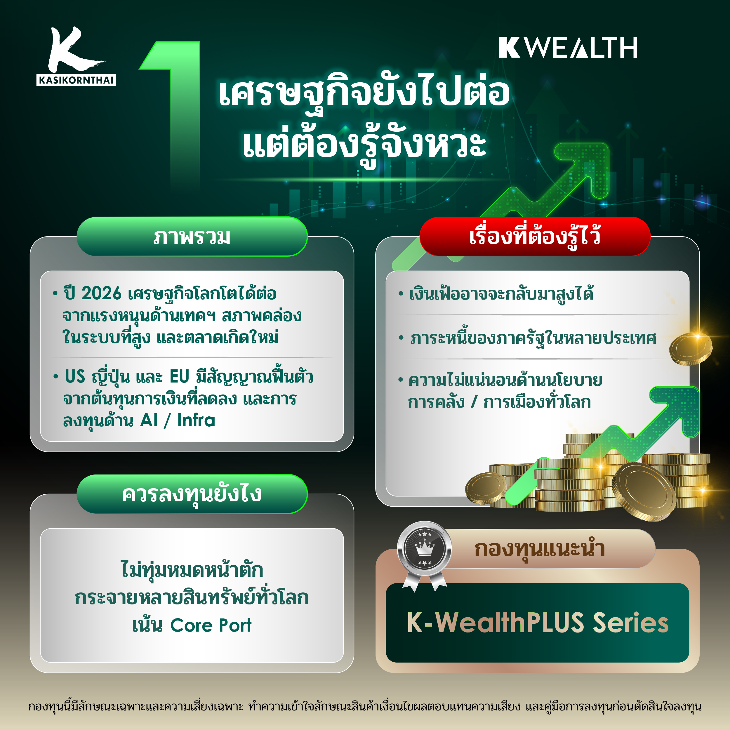 แนะนำให้เลือกลงทุนเชิงคัดสรร (Selective) มากกว่าซื้อทั้งตลาด หรือการลงทุนแบบ Global Multi-Asset Fund ด้วยกองทุน K-WealthPLUS Series เลือกลงทุนได้ตามระดับความเสี่ยง