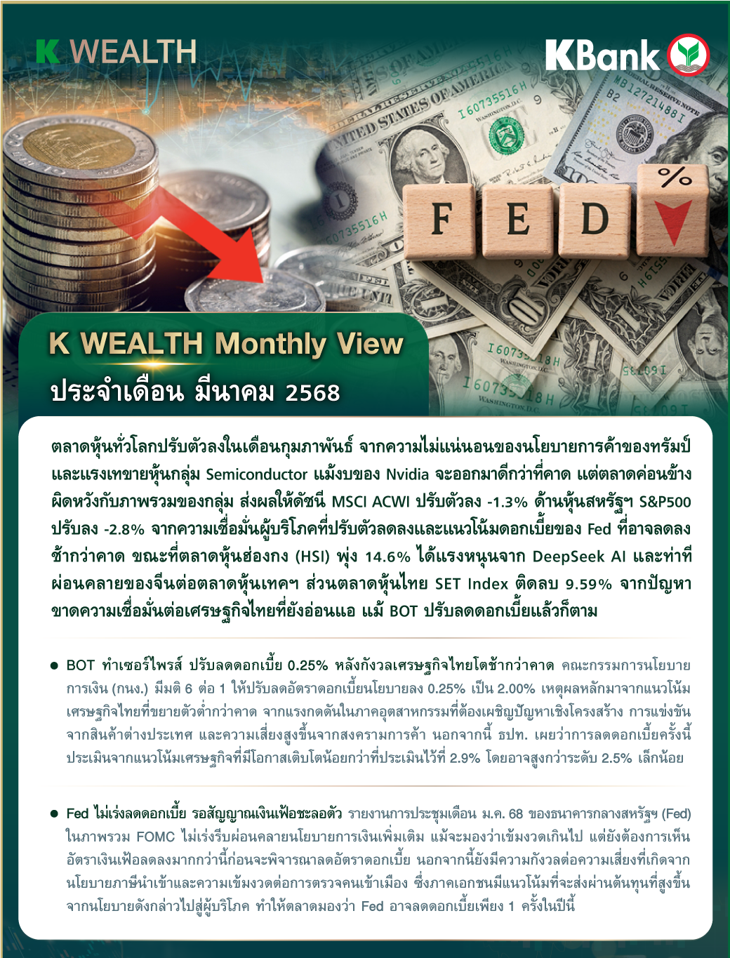 มุมมองตลาด และ กองทุนแนะนำ จาก K WEALTH