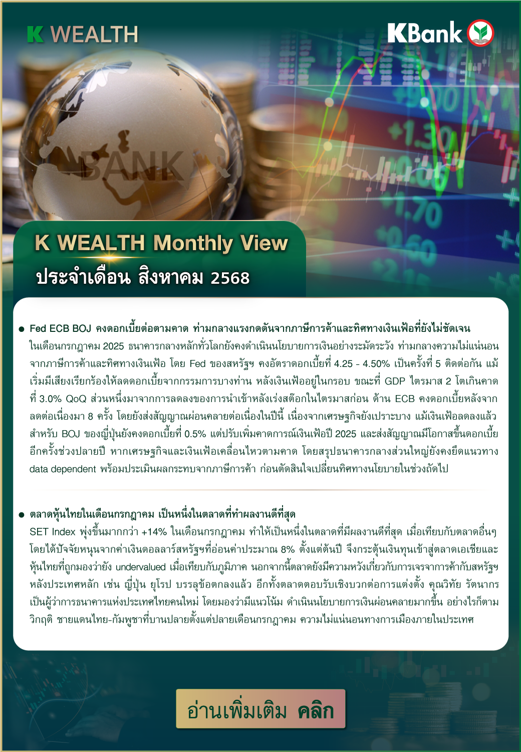 มุมมองตลาด และ กองทุนแนะนำ จาก K WEALTH