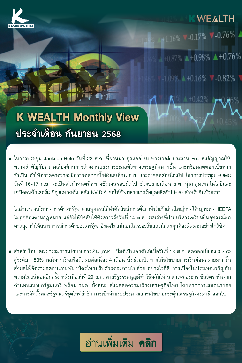 มุมมองตลาด และ กองทุนแนะนำ จาก K WEALTH