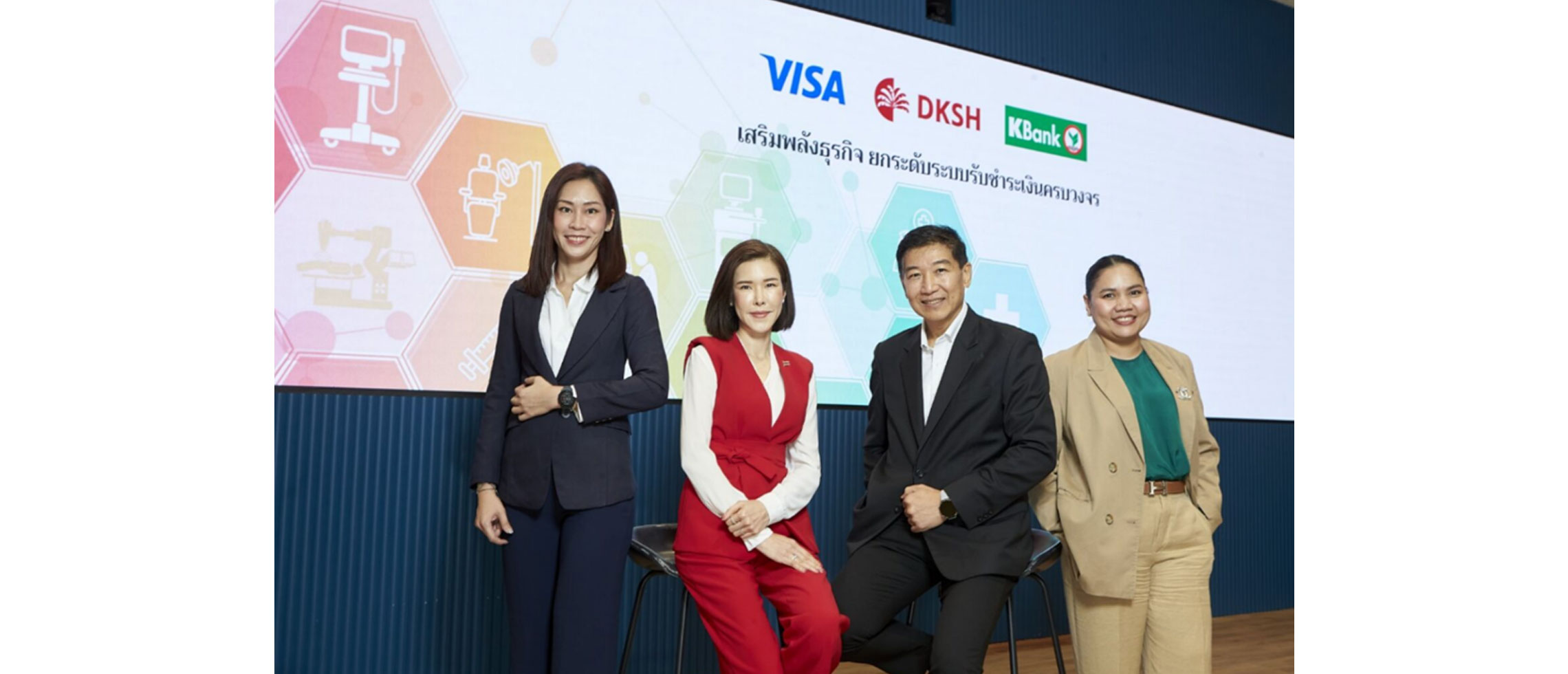 นายบุญเติบ จีรภัทร์ (ที่ 2 จากขวา) นางสาวรวีวรรณ มูลทรัพย์ (ขวา) ผู้ช่วยผู้จัดการใหญ่ ธนาคารกสิกรไทย นางสาวภัคนภา บุญประสพ (ที่ 2 จากซ้าย) Director, Country Taxation & Treasury บริษัท DKSH (ประเทศไทย) จำกัด และนางสาวพรทิพย์ สุวิญญัติชัยพร (ซ้าย) ผู้อำนวยการฝ่ายขายลูกค้ากลุ่มธุรกิจ บริษัท วีซ่า อินเตอร์เนชั่นแนล (ประเทศไทย) จำกัด ร่วมประกาศความร่วมมือเชิงกลยุทธ์ เพื่อพัฒนาระบบการรับชำระเงินสำหรับ Business to Business ที่เป็นลูกค้าของ DKSH ประเทศไทย โดยเริ่มผลักดันในกลุ่มธุรกิจผลิตภัณฑ์เพื่อสุขภาพก่อน และจะขยายไปกลุ่มธุรกิจอื่น ๆ ต่อไป เช่น กลุ่มธุรกิจสินค้าอุปโภคบริโภค เพื่อให้การรับชำระเงินมีประสิทธิภาพ ปลอดภัย และรองรับการเติบโตในอนาคต โดยธนาคารกสิกรไทยจะให้บริการครบวงจรทั้งเครื่องรับชำระเงินอิเล็กทรอนิกส์ (EDC) และ K Payment Link โซลูชันการชำระเงินออนไลน์ที่ร้านค้าสามารถสร้างลิงก์ส่งให้ลูกค้าชำระเงินได้ทันที และมีความปลอดภัย รองรับทั้งบัตรเครดิต บัตรเดบิต และ Thai QR Payment เพื่อช่วยให้การดำเนินธุรกิจของ DKSH และลูกค้าสามารถรับชำระเงินได้อย่างสะดวก ปลอดภัย และตรวจสอบได้ โดยมี วีซ่า ร่วมเป็นพันธมิตรสนับสนุนด้านเทคโนโลยีการชำระเงินระดับโลก เพื่อเสริมสร้างระบบการเงินที่มีความปลอดภัย ทันสมัย โดยธนาคารกสิกรไทยเล็งเห็นโอกาสในการเข้าสนับสนุนการรับชำระเงินซึ่งจะเติบโดรวมกว่า 10,000 ล้านบาท ความร่วมมือครั้งนี้ถือเป็นก้าวสำคัญในการเสริมสร้างโครงสร้างพื้นฐานทางการเงินให้แข็งแกร่ง พร้อมสนับสนุนการขยายตัวของธุรกิจอย่างยั่งยืน และพร้อมต่อยอดการเติบโตของธุรกิจในอนาคตอย่างยั่งยืน