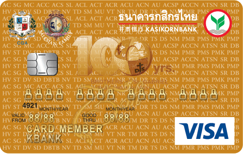 ธนาคารกสิกรไทยจะบริจาคยอดใช้จ่ายของคุณคืนให้สมาพันธ์สมาคมศิษย์เก่าคณะเซนต์คาเบรียลแห่งประเทศไทย (CGA) และ ครอบครัวซาเลเซียนประเทศไทย (SFT) เพื่อเป็นทุนการศึกษาแก่เยาวชนของโรงเรียนในเครือทุกโรงเรียน