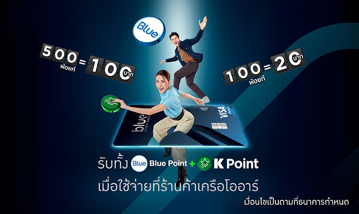 คะแนนสะสม blueplus+ point และ K Point ของบัตร Blue Credit Card มีอายุ 3 ปี นับจากวันที่ได้รับคะแนน