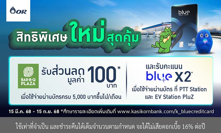ธนาคารและโออาร์ได้เปลี่ยนชื่อที่ใช้เรียกบัตร และปรับโฉมบัตร "PTT Blue Credit Card" เป็นบัตร "Blue Credit Card" ตั้งแต่วันที่ 19 ตุลาคม 2565 เป็นต้นไป โดยยังคงเป็นบัตรเครดิตร่วมระหว่าง บมจ. ธนาคารกสิกรไทย (“ธนาคาร”) กับ บริษัท ปตท. น้ำมันและการค้าปลีก จำกัด (มหาชน) (“โออาร์”) เช่นเดิม
