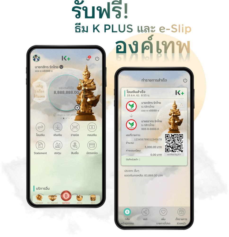 • ฟรีค่าธรรมเนียม : เปิดบัญชี 0 บาท , ไม่มีค่าธรรมเนียม โอน / เติม / จ่าย / รับเงิน และ ขอ statement ฟรี ผ่าน K PLUS
