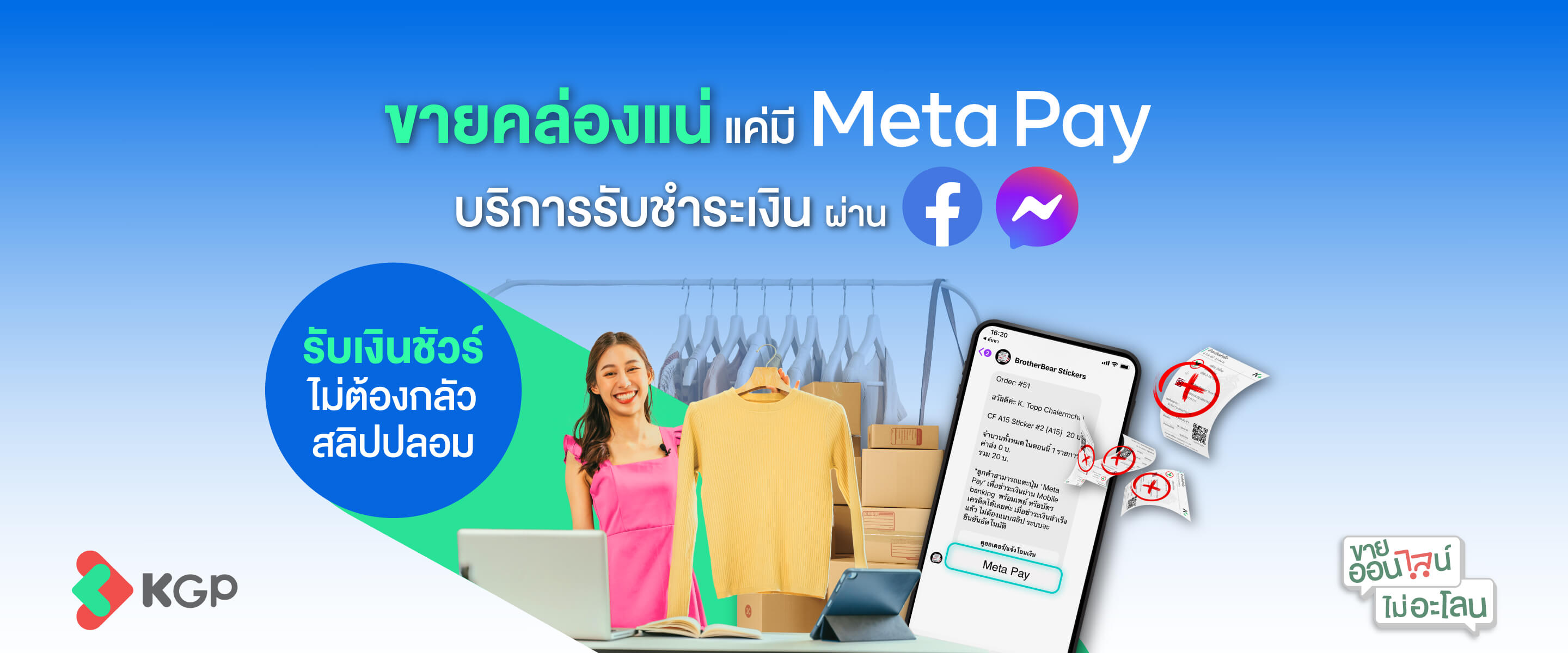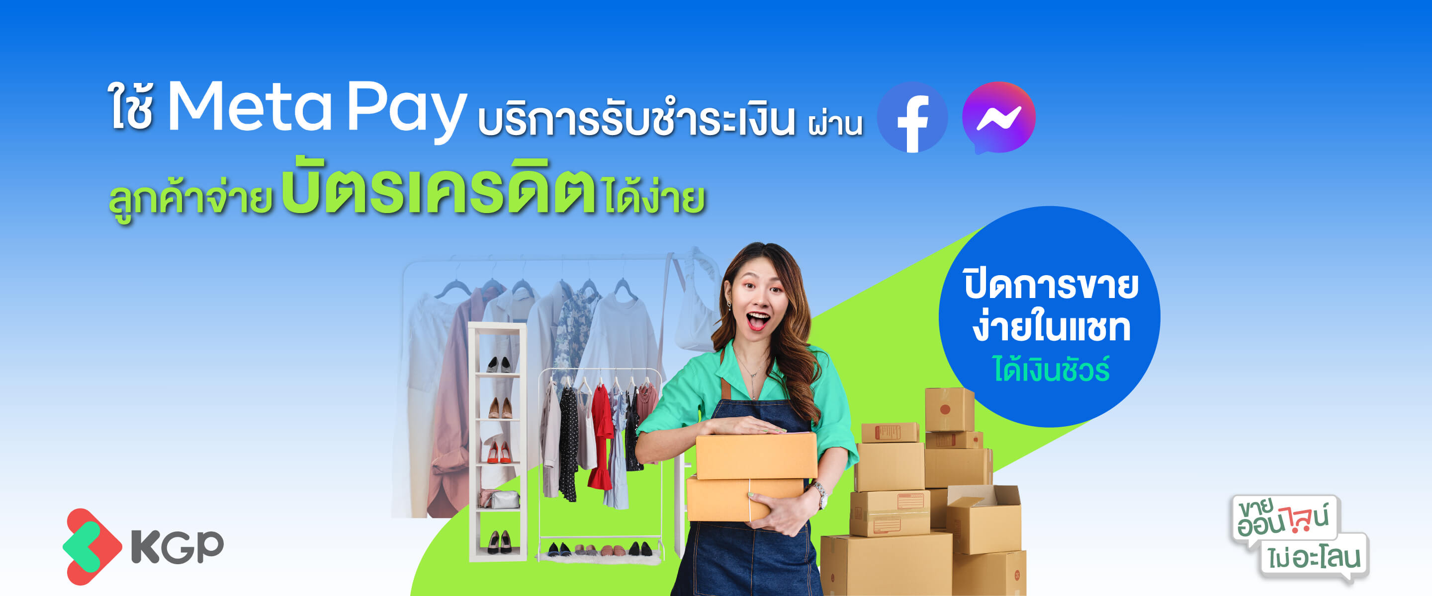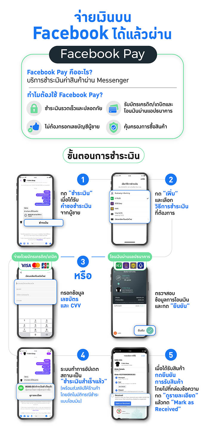 บริการการชำระเงินออนไลน์ที่ช่วยให้เพจร้านค้าบน Facebook สามารถรับชำระเงินจากลูกค้าผ่านบัตรเครดิต บัตรเดบิต (VISA, Mastercard และ JCB) โอนเงินผ่านแอปพลิเคชันของธนาคาร หรือ QR Code ได้โดยตรงในกล่องข้อความสนทนาบน Facebook Messenger โดยไม่ต้องออกจากแอปพลิเคชันเพื่อชำระเงินให้กับเพจร้านค้าได้