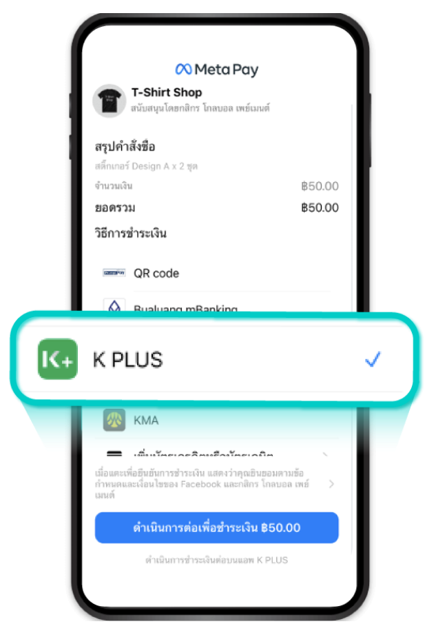 ร้านค้าสามารถรับชำระเงินจากลูกค้าผ่าน Meta Pay ซึ่งชำระได้ 3 วิธี