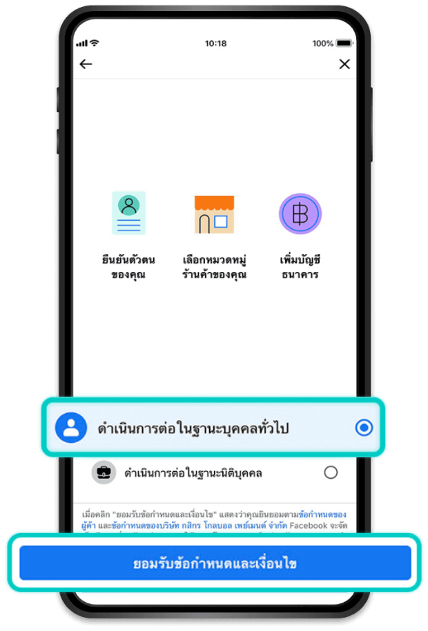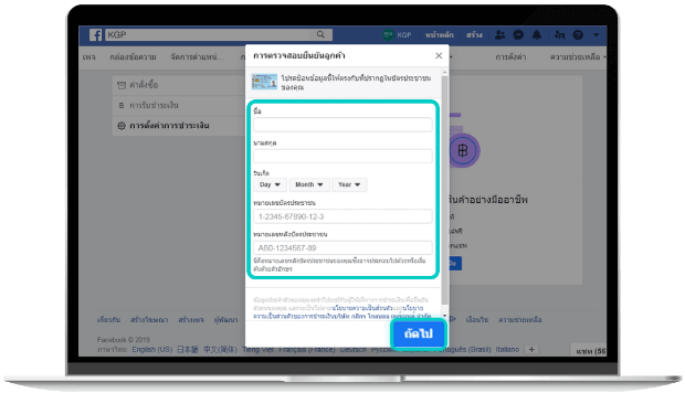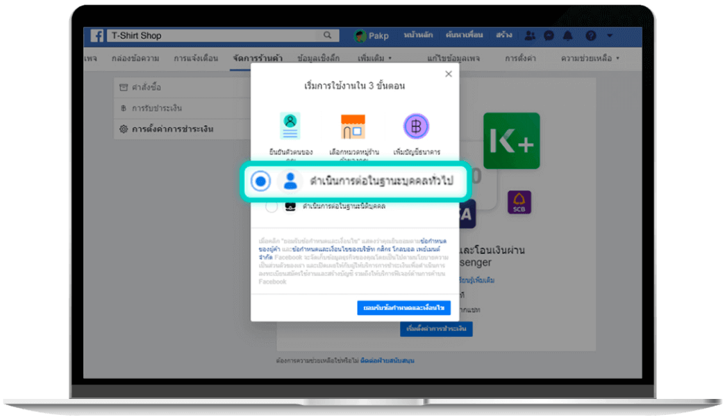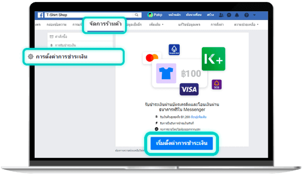 คุณสามารถสมัครใช้บริการรับชำระเงินบน Facebook ได้บนเพจร้านค้าบน Facebook Page ของคุณ ก่อนการสมัคร: เพจของคุณจะต้องมี shop section และตั้งค่าสกุลเงินในการซื้อขายสินค้าเป็นสกุลเงินไทยบาท