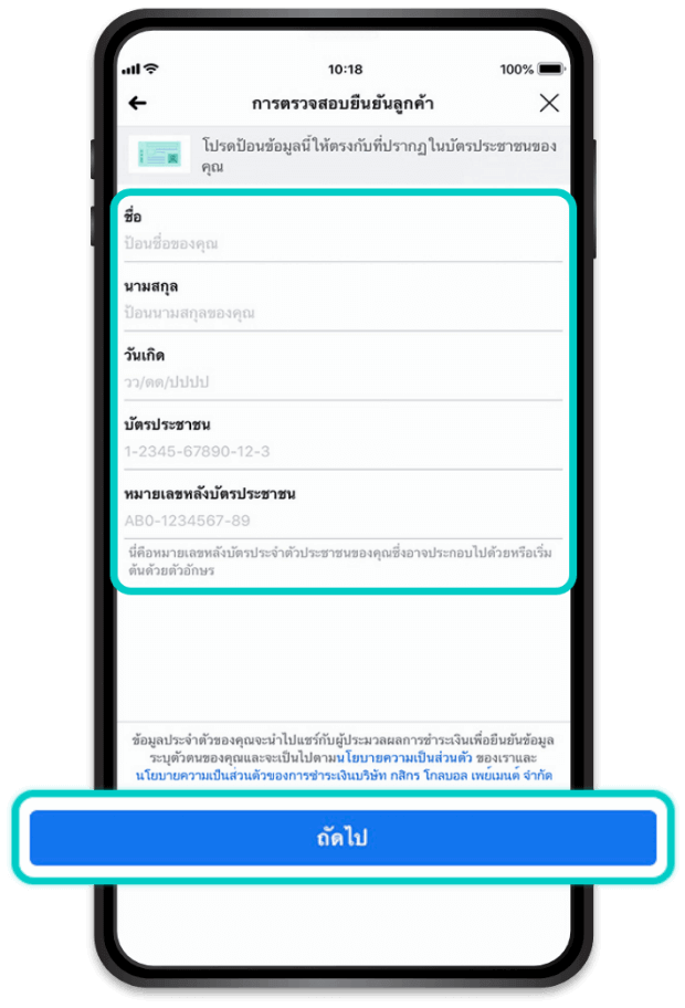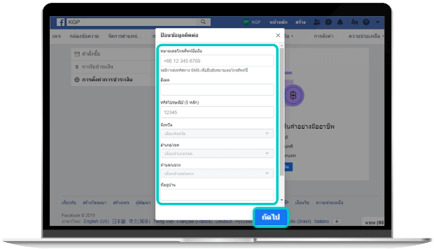ใส่ "ข้อมูลการติดต่อ" ของคุณ