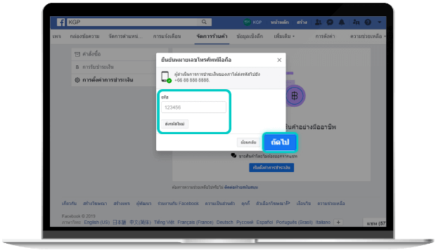 กรอกเลข "OTP" ที่ถูกส่งไปยัง
