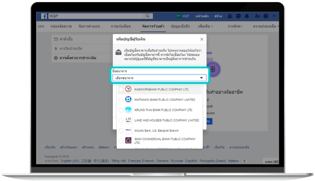 ดำเนินการตั้งค่า "บัญชีธนาคาร" สำหรับรับเงิน