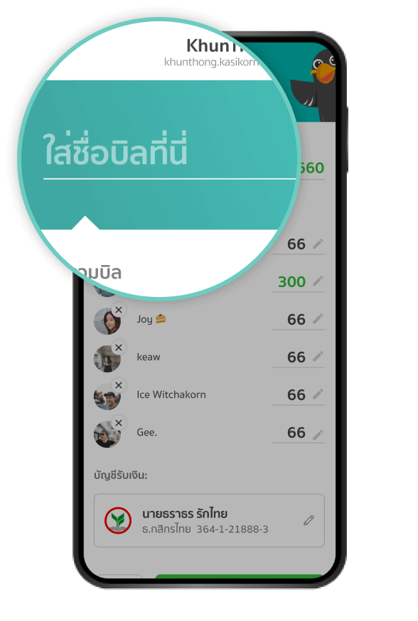 สามารถชวนเพื่อนหารบิลกับขุนทองบนช่องทาง