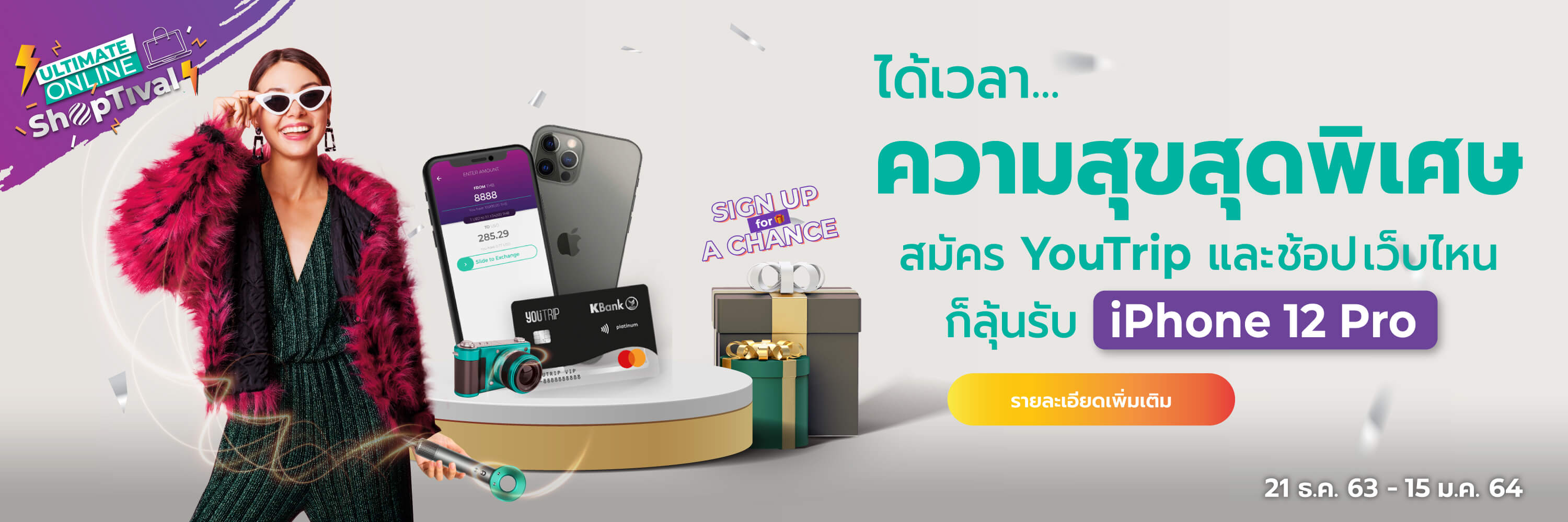 "YouTrip คือ Muti-Currency Wallet กระเป๋าเงินดิจิทัลรองรับหลายสกุลเพื่อการเดินทาง ให้สามารถใช้จ่ายสกุลเงินต่างประเทศได้ด้วยเรทที่ดีกว่า และฟรีทุกค่าธรรมเนียม เหมาะสำหรับทุกคนที่ต้องใช้จ่ายเป็นสกุลเงินต่างประเทศ โดยสามารถใช้จ่ายได้กว่า 150 สกุลเงินทั่วโลก และยังสามารถแลกเปลี่ยนเงินต่างประเทศล่วงหน้าได้ถึง 10 สกุลเงินผ่านแอปพลิเคชัน นอกจากนี้ YouTrip ยังรองรับการจ่ายเงินได้หลากหลายรูปแบบทั้ง รูด แตะ จ่าย ค่าสินค้า กดเงินสดที่ตู้ ATM ต่างประเทศ หรือ ช้อปปิ้งออนไลน์ สามารถสมัครได้แล้ววันนี้ เพียงดาวน์โหลดแอป YouTrip และสมัครใช้งานง่ายๆ ภายใน 3 นาที! สมัครเลย"
