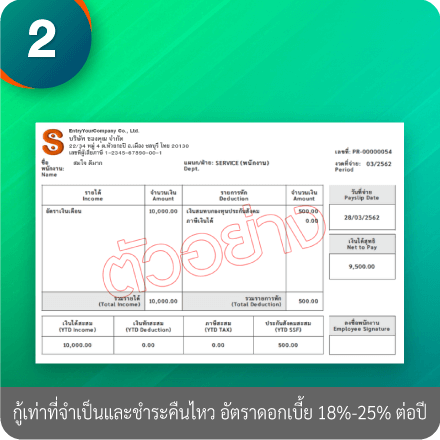 กู้เท่าที่จำเป็นและชำระคืนได้ตามกำหนด จะได้ไม่เสียดอกเบี้ย 18%-25% ต่อปี อัตราดอกเบี้ย 0% นานสูงสุด 36 เดือน เมื่อลูกค้าชำระเต็มจำนวนภายในวันครบกำหนดชำระ