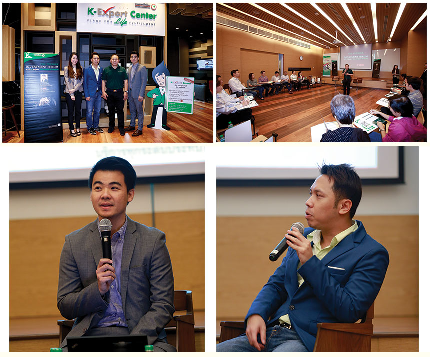 เมื่อวันที่ 17 ตุลาคม 2558 ที่ผ่านมาธนาคารกสิกรไทยจัดงานสัมมนา THE PREMIER Investment Forum ตอนกองทุนรวม กองทุนรวย ณ K-Expert Center อาคารจามจุรี สแควร์ โดยมี 2 วิทยากรผู้เชี่ยวชาญเกี่ยวกับกองทุนได้แก่ คุณอาทิตย์ ทองเจริญ จาก KAsset และ คุณกิตติคุณ ธนรัตนพัฒนกิจ จากบริษัท มอร์นิ่งสตาร์ รีเสิร์ช (ประเทศไทย) จำกัด ลูกค้าเดอะพรีเมียร์ที่เข้าร่วมกิจจกรม ได้พบทุกเทคนิคเคล็ดลับการเลือกกองทุนรวม การบริหารพอร์ตกองทุนรวม และแนะนำกองทุนเด่นในปี 2016 ที่ห้ามพลาด รวมถึงแนะนำเครื่องมือวิเคราะห์กองทุนจาก Morning Star เพื่อให้ลูกค้าเดอะพรีเมียร์เพิ่มความมั่นใจในการลงทุนในกองทุนทั้งในประเทศและต่างประเทศ