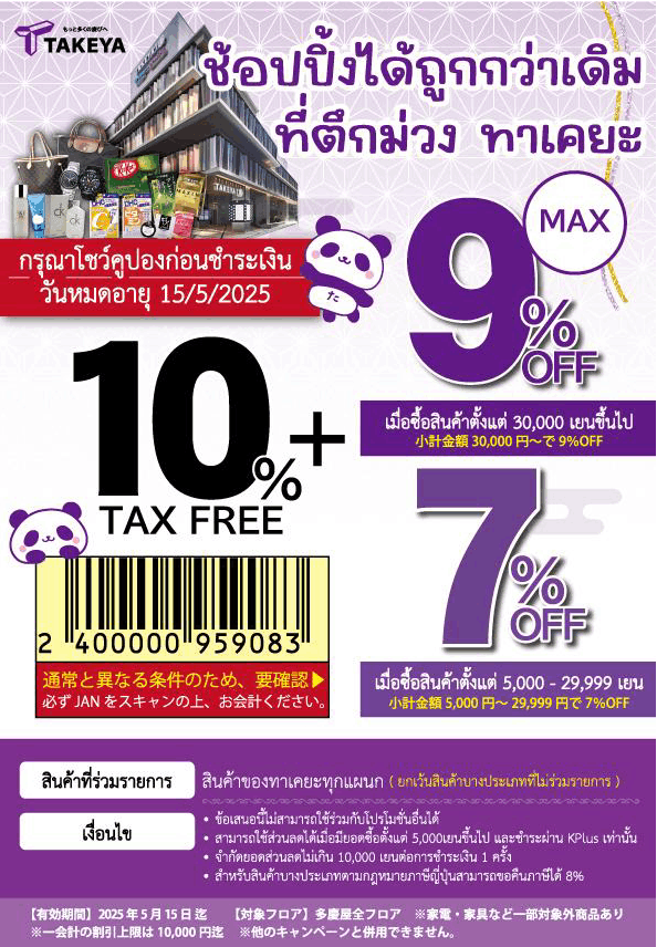 ยอดชำระขั้นต่ำจำนวน 30,000 เยนขึ้นไป/รายการสำหรับส่วนลดจำกัดยอดส่วนลดไม่เกิน 10,000 เยน/รายการ